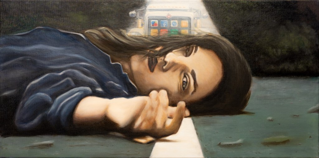 GALLERY YOUNG STARS (ACRYLIC ON CANVAS – 80 X 40 cm) CAN YOU KEEP A SECRET ? (ACRYLIC ON CANVAS – 90 X 60 cm) I CAN’T BELIEVE YOU (ACRYLIC ON CANVAS – 90 X 60 cm) AGRI-CULTURE (ACRYLIC ON CANVAS – 120 X 50 cm) ZZ TOP (ACRYLIC ON CANVAS – 90 X 60 cm) HELP ME (OIL ON CANVAS – 70 X 50 cm) F*CK THE WORLD (OIL ON CANVAS – 90 X 60 cm) THE SHOW MUST GO ON (ACRYLIC ON CANVAS – 120 X 50 cm) WAITING FOR YOUR LOVE (OIL ON CANVAS – 90 X 60 cm) MY NAME IS HOPE (OIL ON CANVAS – 60 X 90 cm) INTO THE WOODS (ACRYLIC ON CANVAS – 90 X 60 cm) CROSSING LIVES (ACRYLIC ON CANVAS – 140 X 70 cm) DANCE DANCE DANCE (OIL ON CANVAS – DIPTYCH 200 X 50 cm) CRUSHING SOCIAL MEDIA (OIL ON CANVAS – 100 X 50 cm) WHO PROVIDES THE LIGHT ? (OIL ON CANVAS – 120 X 50 cm) Dit delen: Delen op X (Opent in een nieuw venster) X Share op Facebook (Opent in een nieuw venster) Facebook Vind-ik-leuk Aan het laden...